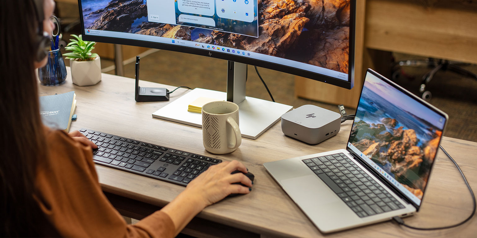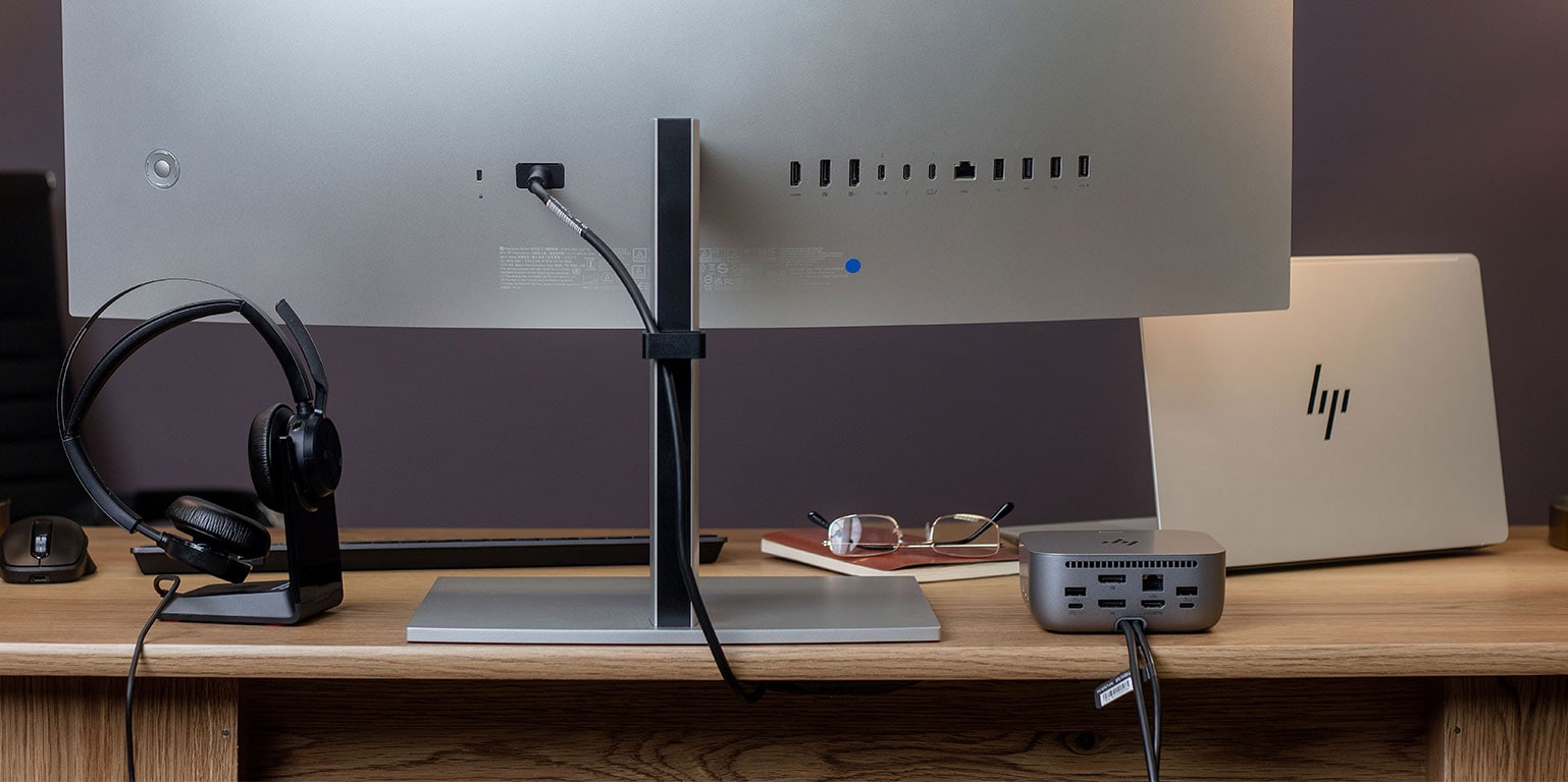 The HP 37.5" WQHD+ Thunderbolt 4 Monitor pushes you above and beyond with dazzling colors on a powerful, ultrawide curved monitor for effortless productivity.HP Thunderbolt Dock 4 G6