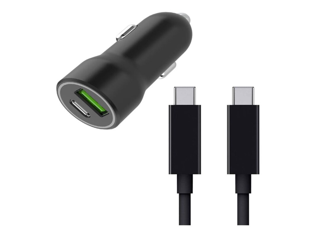 The 4XEM In Car Mobile Device Charging Kit - the ultimate solution for keeping your mobile devices powered up on the go including the iPhone 15, 15 Plus, 15 Pro and 15 Pro Max. With a sleek black design, this kit includes a Dual USB Adapter and a 3FT USB-C to USB-C Cable, providing you with efficient and reliable charging options for your devices.