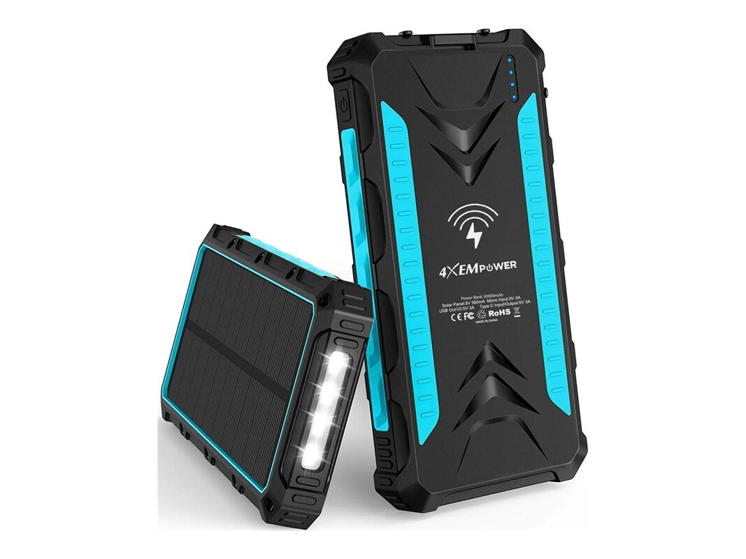 Discover an outdoor charging solution with the 4XEM mobile solar power bank and charger. Designed for the modern adventurer, this device combines a robust 30,000 mAh lithium-ion battery with a solar charging panel, ensuring your gadgets remain powered in the most remote locations. Its IP54 rating provides protection against dust, shocks, and water, making it a reliable partner in any environment. With the convenience of wireless charging and multiple USB outputs, staying connected has never been easier. Whether you're camping under the stars or navigating the urban jungle, this solar power bank and charger is your gateway to unlimited power.
