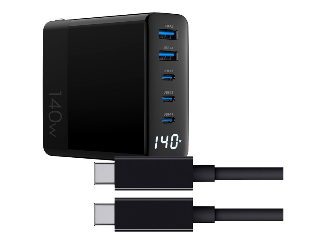 Introducing the 4XEM 140W 10FT USB-C to USB-C Laptop GaN Charging Kit - the ideal power solution for the public sector, spanning education, business, and government. This cutting-edge charger is designed to meet the high demands of modern institutions, offering a seamless power delivery experience with an array of features that cater to various needs. At the heart of this charging kit are three USB Type-C Female ports and two USB Type-A Female ports, making it exceptionally versatile for charging multiple devices simultaneously. It's fully compliant with industry standards like USB-PD 3.0 and USB 3.2 Gen 2, ensuring optimal performance and efficiency. With a generous 140W power budget and a maximum 100W power delivery, it can handle the charging needs of laptops, tablets, smartphones, and other devices commonly found in educational, business, and government environments. The 10-foot charging cable included in this kit is not only long but also fast, supporting a data rate of 10Gbps. It also offers video support, making it perfect for connecting laptops to external displays, a feature often required in the public sector.