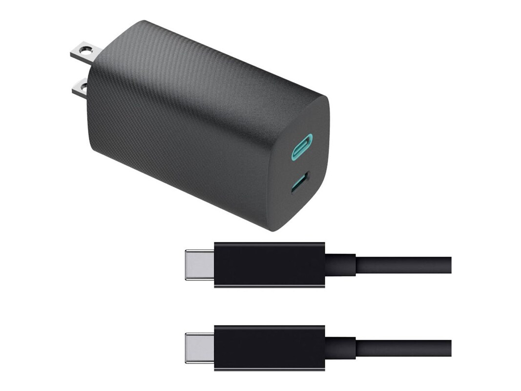 Introducing the 4XEM 45W 10FT USB-C to USB-C Laptop GaN Charging Kit, a versatile powerhouse designed to meet the charging needs of both schools and businesses. This charging kit guarantees reliability and longevity. The package includes a 45W Dual USB-C GaN Charger and a 10ft USB-C/USB-C cable, perfect for immediate use. Equipped with 2 USB Type-C female ports, the charger features non-polarized NEMA 1-15P prongs, making it compatible with standard North American wall outlets. The included retractable prongs add convenience to its portability, ensuring that it's ready to charge devices on-the-go.