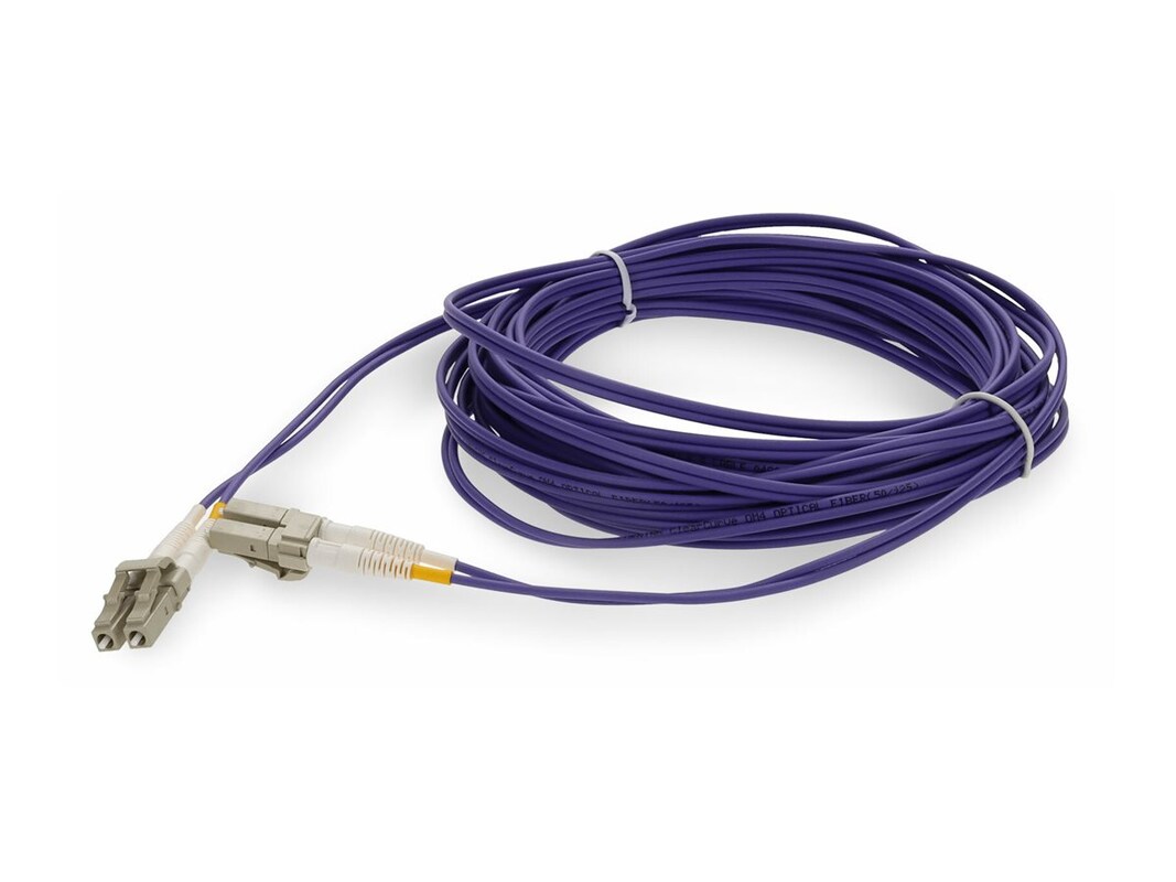 This AddOn LC to LC Purple OM4 Duplex OFNP (Plenum-Rated) TAA Fiber Patch Cable is high-performance multimode fiber optimized for high-speed data transmission, supporting up to 100G over distances of up to 150 meters. Ideal for data centers and large-scale network infrastructures, it delivers superior bandwidth and reliability for demanding business applications. OFNP plenum fiber cable jackets are engineered for use in air-handling spaces, such as ceilings and ducts, offering the highest fire resistance to prevent flame spread and reduce smoke in the event of a fire. These cables meet stringent safety standards, making them the top choice for businesses that need safe, reliable networking in critical building areas. The Standard Boot option provides reliable and straightforward connections for fiber cables, making it an economical choice for various networking applications. Ideal for businesses that require dependable performance without the complexity, this option ensures consistent data transmission in everyday network setups.