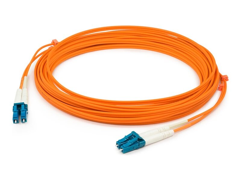 This is a 0.5m LC (male) to LC (male) orange simplex riser-rated fiber patch cable. OM2 cables have a standard jacket color of orange and a core size of 50µm. They support 10 Gigabit Ethernet for lengths measuring up to 82 meters, but are more commonly used for 1 Gigabit Ethernet applications. This optical fiber, nonconductive, riser (OFNR) cable is best suited for use in interior fiber-optic applications. A simplex cable is a single strand of fiber that works best with bi-directional transceivers as well as other single-transmitting devices.
