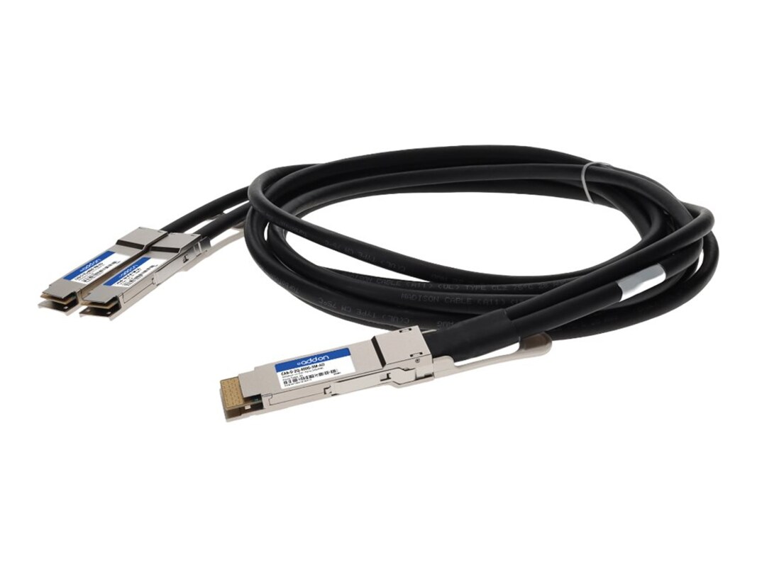 This is an Arista Networks compatible TAA compliant 400GBase-CU QSFP-DD 400G to 2xQSFP56 200G PAM-4 direct attach cable that operates over passive copper. It has been programmed, uniquely serialized, and data-traffic and application tested to ensure it is 100% compliant and functional.