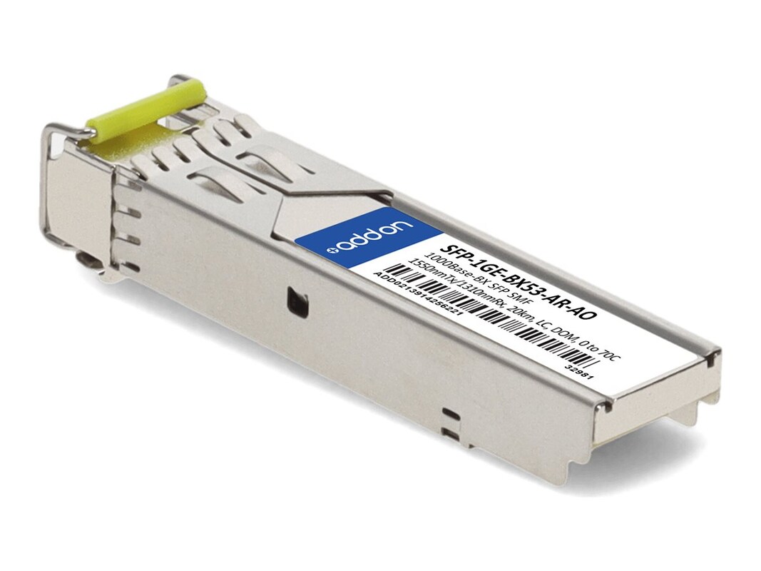 AddOn Arista Networks SFP-1GE-BX53-AR Compatible 1000Base-BX SFP 1550nm Tx 1310nmRx 20km Transceiver, TAA