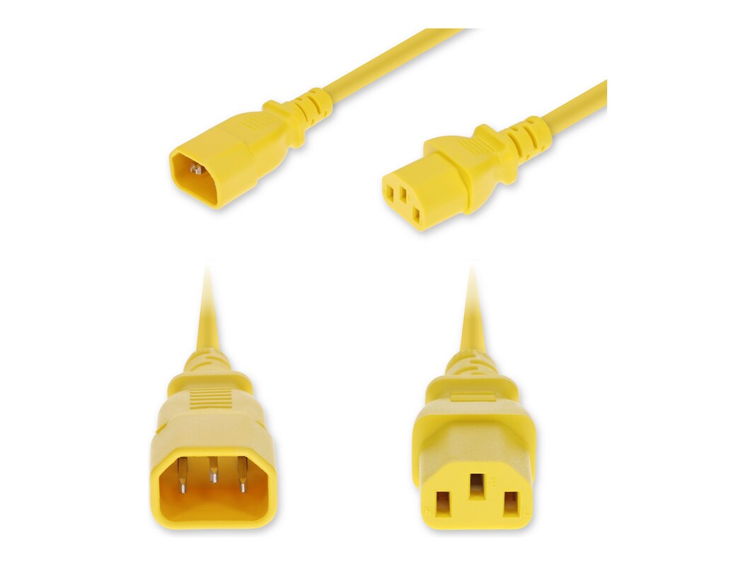 AddOn C14 Male to C13 Female Standard Commercial 18 AWG 250V at 10A PVC SJT Power Cable, Yellow, 3ft