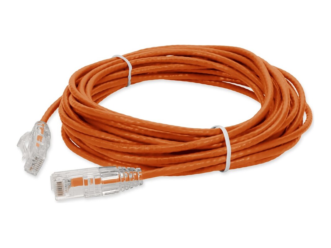 This is a RJ-45 (male) to RJ-45 (male) red Cat6 Slim UTP PVC-rated patch straight cable that is used for high speed data transfer.