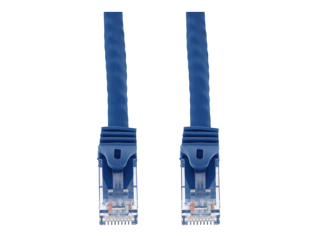 This is a RJ-45 (male) to RJ-45 (male) blue Snagless, Non-Booted, unshielded twisted pair PVC copper patch cable. The Cat6 cable is a standardized twisted pair cable for Ethernet or other physical network layers. Cat6 standards specify performance of up to 250MHz. This PVC jacketed cable is best suited for LANs or SANs, and is recommended for connection between fiber patch panels, hubs, switches, media converters and routers. Unshielded twisted pair patch cables are perfect for data centers, LANs and other short range network connections.
