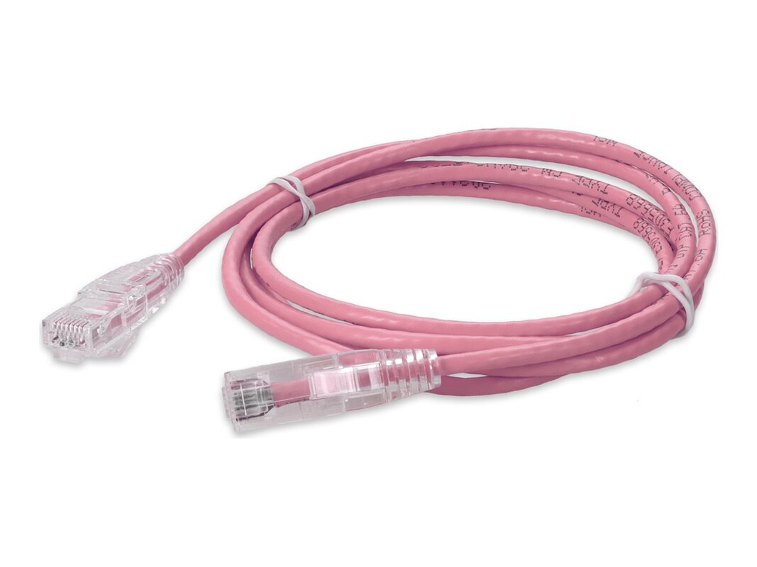 AddOn Cat6A Snagless Booted UTP PVC Slim Copper Patch Cable, Pink, 1ft