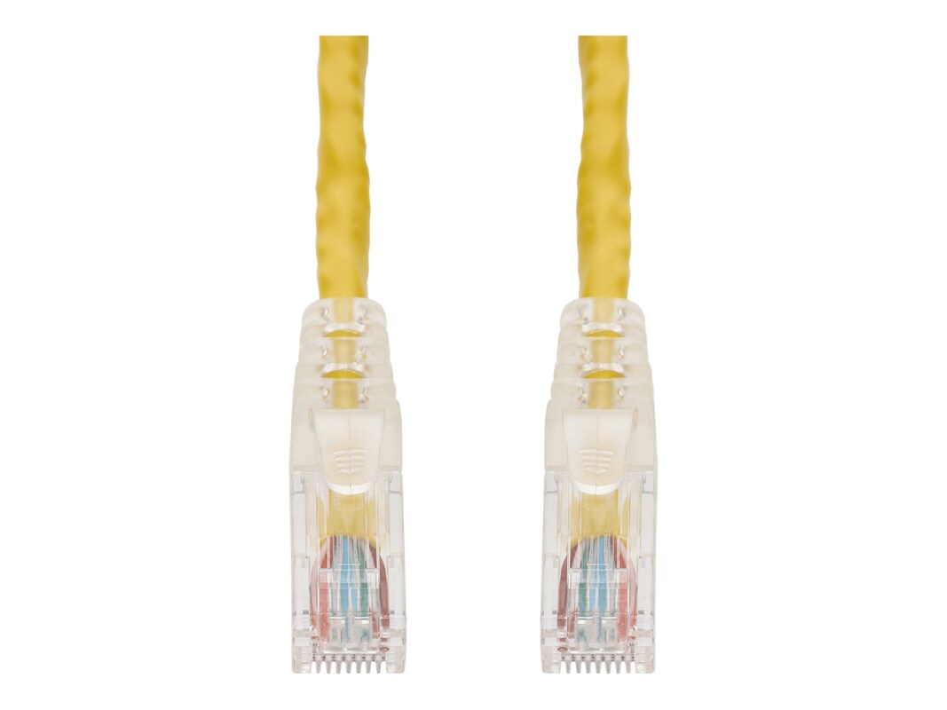 This is a RJ-45 (male) to RJ-45 (male) yellow straight unshielded twisted pair PVC copper patch cable. The Cat6 cable is a standardized twisted pair cable for Ethernet or other physical network layers. Cat6 standards specify performance of up to 250MHz. This PVC jacketed cable is best suited for LANs or SANs, and is recommended for connection between fiber patch panels, hubs, switches, media converters and routers. Unshielded twisted pair patch cables are perfect for data centers, LANs and other short range network connections.