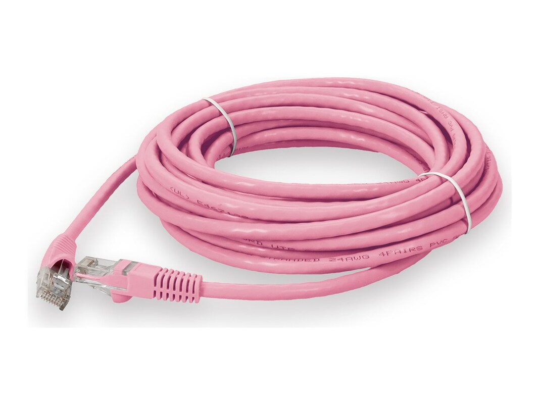 This is a RJ-45 (male) to RJ-45 (male) pink Snagless unshielded twisted pair PVC copper patch cable. The Cat6A cable is designed to support the high speed of EoC (Ethernet over Copper) over the full 100 meters. Cat6A cable standards provide a performance of up to 500MHz and is suitable for 100Base-TX, 1000Base-T and 10GBase-T. This PVC jacketed cable is best suited for LANs or SANs, and is recommended for connection between fiber patch panels, hubs, switches, media converters and routers. Unshielded twisted pair patch cables are perfect for data centers, LANs and other short range network connections.