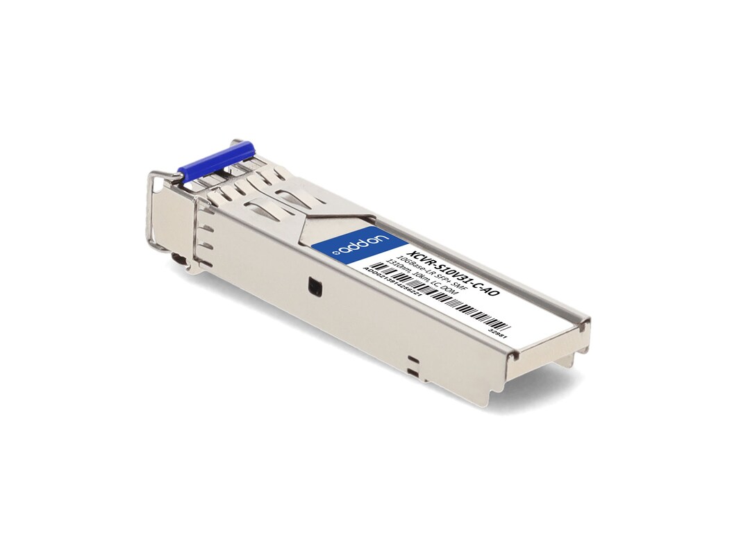 This Ciena XCVR-S10V31-C compatible SFP+ transceiver provides 10GBase-LR throughput up to 10km over single-mode fiber (SMF) using a wavelength of 1310nm via an LC connector. It can operate at temperatures between 0 and 70C. Our transceiver is built to meet or exceed OEM specifications and is guaranteed to be 100% compatible with Ciena. It has been programmed, uniquely serialized, and tested for data-traffic and application to ensure that it will initialize and perform identically. All of our transceivers comply with Multi-Source Agreement (MSA) standards to provide seamless network integration. Additional product features include Digital Optical Monitoring (DOM) support which allows access to real-time operating parameters. This transceiver is Trade Agreements Act (TAA) compliant.