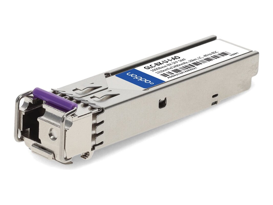 This Cisco compatible SFP transceiver provides 1000Base-BX throughput up to 10km over single-mode fiber (SMF) using a wavelength of 1310nmTx/1490nmRx via an LC connector. This bidirectional unit must be used with another transceiver or network appliance of complementing wavelengths. It can operate at temperatures between -40 and 85C. It is guaranteed to be 100% compatible with the equivalent Cisco transceiver. This easy to install, hot swappable transceiver has been programmed, uniquely serialized and data-traffic and application tested to ensure that it will initialize and perform identically. It is built to meet or exceed the specifications of Cisco, as well as to comply with MSA (Multi-Source Agreement) standards to ensure seamless network integration. This transceiver is Trade Agreements Act (TAA) compliant.