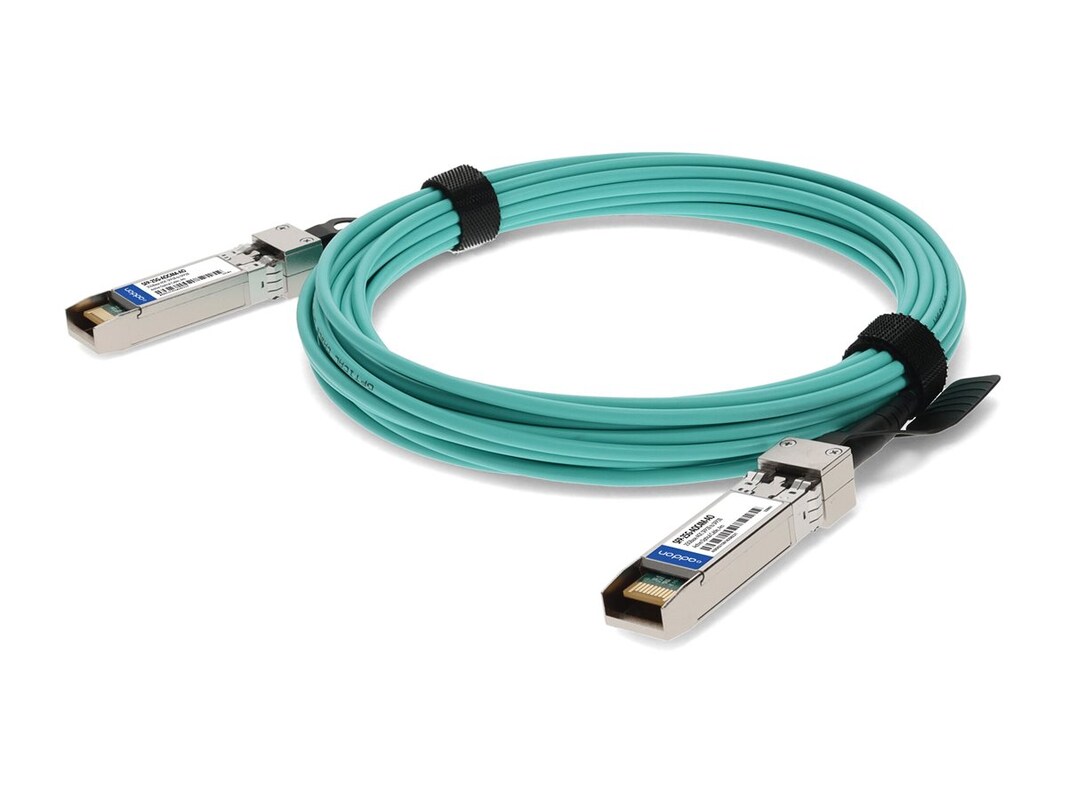 This is a Cisco compatible 25GBase-AOC SFP28 to SFP28 active optical cable that operates over multi-mode fiber. At a wavelength of 850nm, it has been programmed, uniquely serialized, and data-traffic and application tested to ensure it is 100% compliant and functional. This active optical cable is TAA (Trade Agreements Act) compliant, and is built to comply with MSA (Multi-Source Agreement) standards.