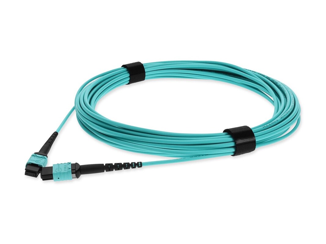 AddOn MPO (Female) to MPO (Female) 12-strand OM4 Crossover Fiber OFNP Plenum-Rated Patch Cable, Aqua, 10m
