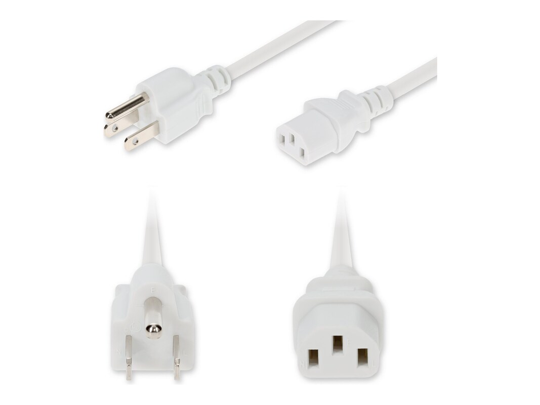 AddOn NEMA 5-15P (M) to C13 (F) Standard Commercial 18 AWG 125V at 10A PVC SJT Power Cable, White, 1ft
