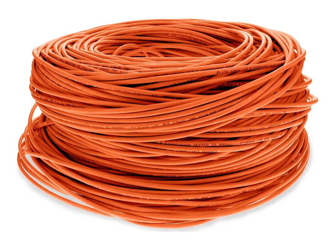 This is a 1000ft non-terminated shielded twisted pair PVC copper patch cable. The Cat6 cable is a standardized twisted pair cable for Ethernet or other physical network layers. Cat6 standards specify performance of up to 250MHz. This PVC jacketed cable is best suited for LANs or SANs, and is recommended for connection between fiber patch panels, hubs, switches, media converters and routers. A shielded twisted pair patch cable offer both a higher bandwith and a more durable cablestrength than an unsheilded twisted pair cable.