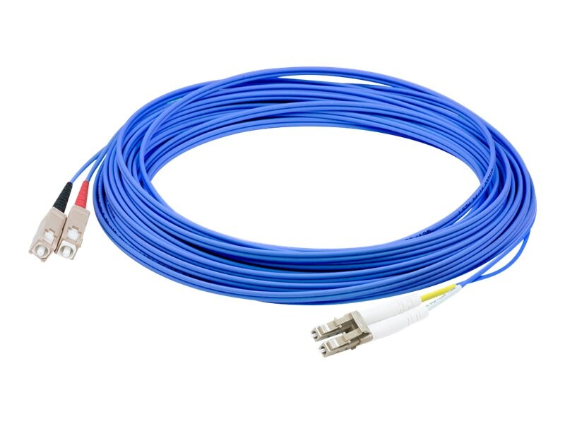This is a 10m SC (male) to LC (male) blue duplex fiber patch cable. An OM1 cable has a core size of 62.5 microns that can support 10 Gigabit Ethernet at lengths measuring up to 33 meters. It is most commonly used for 100 Megabit Ethernet applications. This jacketed cable is best suited for LANs or SANs, and is recommended for connection between fiber patch panels, hubs, switches, media converters and routers. A duplex cable is a two-strand fiber optic patch cable that works best with transceivers that both transmit and receive. Our patch cables are 100% compliant for all of your networking needs. Our products are guaranteed by federal law to not affect or void OEM warranties.