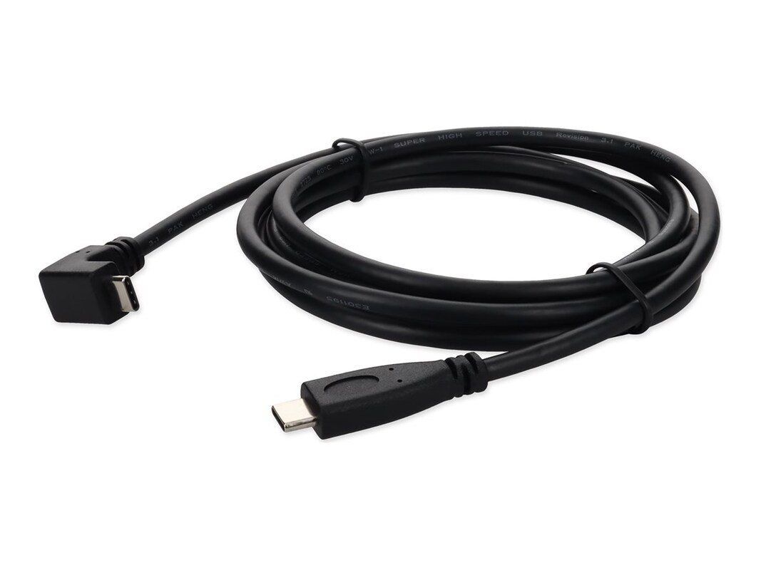 This is a 6ft USB 3.1 (C) to right angle USB 3.1 (C) black adapter cable. It allows your USB 3.1 (C) equipped MacBook, laptop or PC to plug into any USB 3.1 (C) equipped device, such as a mouse, keyboard, thumb drive, or external hard drive.