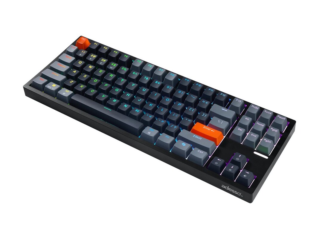 The Adesso EasyTouch 1100 combines versatility and functionality in a compact design, making it a choice for users seeking a flexible keyboard. Equipped with both wireless and wired connectivity options, this keyboard ensures compatibility with multiple devices, enhancing productivity in any setting. Its 84 keys feature red mechanical switches that provide a tactile response, making typing a comfortable and enjoyable experience. With USB, Bluetooth, and 2.4 GHz interfaces, the EasyTouch 1100 connects across various platforms. The illuminated keys facilitate easy typing in low-light conditions, while the multi-OS support ensures compatibility with different operating systems. This ergonomic keyboard also includes a VIA feature and copilot AI hotkey, allowing personalized customization for enhanced user experience.
