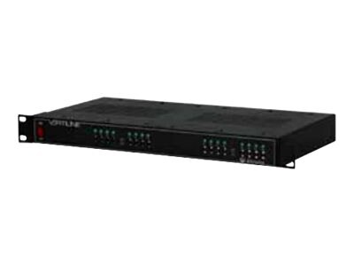 Vertiline16Di CCTV isolated rack mount power supply provides 16 PTC protected power outputs in a space saving 1U EIA 19" rack mount chassis which may be rack, wall or shelf mounted.