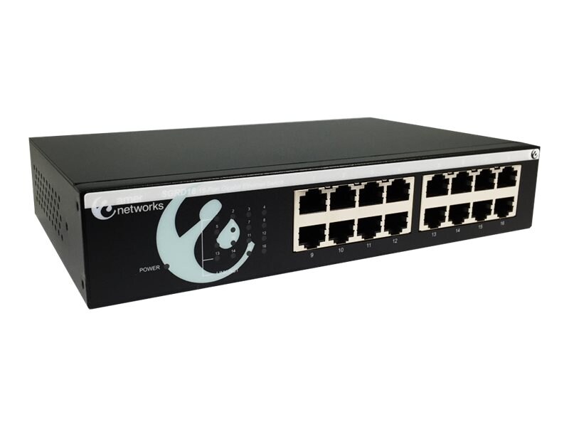 This fanless 16-port 1000Base-T Gigabit Ethernet Switch provides seamless integration for your network. Made with a sturdy metal housing and the ability to be mounted on a desktop or in a standard 19" rack with the included rack mount kit, the SGRD16 is an ideal solution for new networks and upgrades to existing ones. High performance and ease of use is what the SGRD16 is all about, with a 32Gbps switching fabric and 16 10/100/1000Mbps auto-negotiation and auto-MDIX ports. New energy saving features are supported with power being distributed based on cable length and on link status of ports.