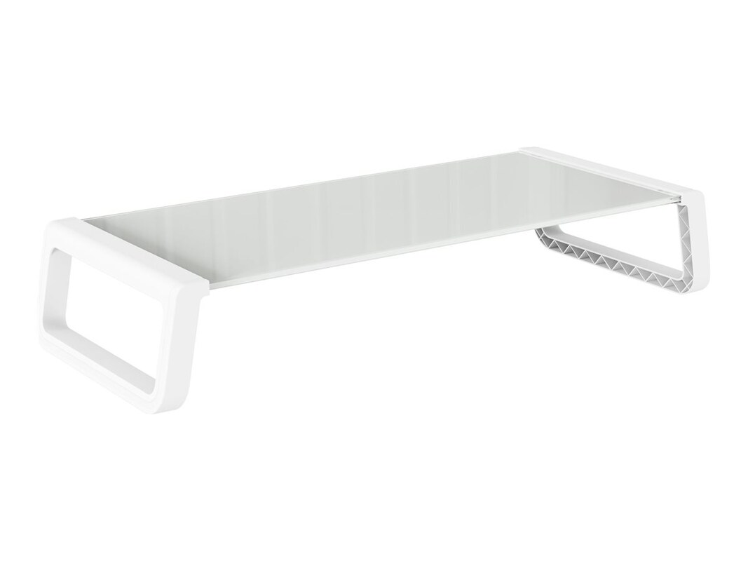 The Amer AMRSR100CW monitor stand enhances your workspace with a blend of practicality and style. This desktop stand offers a sturdy solution for supporting monitors, ensuring that your screen is always at the optimal viewing height. Crafted from durable plastic and glass, it combines functionality with aesthetic appeal, making it a beneficial addition to any office setup. With a maximum load weight of 5 kg, this stand supports a variety of monitor sizes, allowing for a customizable and efficient workspace arrangement.
