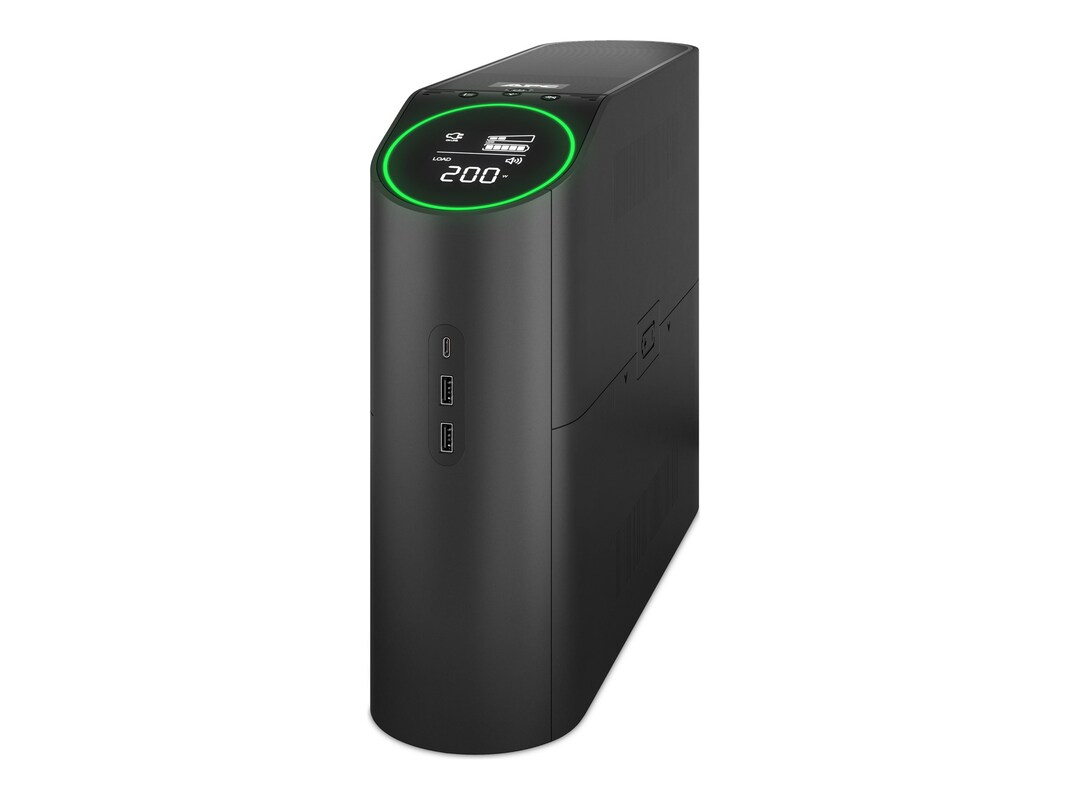This APC Back-UPS Pro offers premium power protection for high performance gaming consoles and PC, routers/modems, and gaming accessories. The 1500VA/900W tower UPS has 10 total outlets, 6 of which are battery back up and surge protection, and 4 that are surge protection only. It has a surge energy rating of 1080 Joules. It features Automatic Voltage Regulation to correct voltage dips and surges to proper levels. It comes with PowerChute Serial Shutdown, an easy-to-use system shutdown software with power and energy management features. This UPS has a 3-year warranty and a $150,000 connected equipment protection policy. It has 2 USB ports (Type A + C) for smart charging of personal devices.