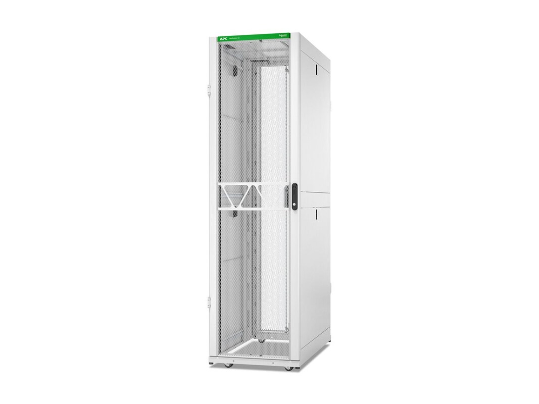 Introducing the redesigned APC NetShelter SX rack enclosure - trusted, versatile, and built for demanding IT environments. With larger load capacities and more space for equipment, it enables higher-density computing. Choose from standard, wide, extra wide, and large-depth options. The modern look is perfect for colocation and customer-facing businesses. Simplify workflows with easy access to cabling and equipment, and optimize airflow and cable management with our wide range of APC accessories. The 270° (180° bayed) opening doors keep aisles clear, while 80% door perforation improves airflow for high-powered servers. Built with all-steel construction, it lasts for years and can be used for various applications. It ships in sturdy, recyclable packaging.