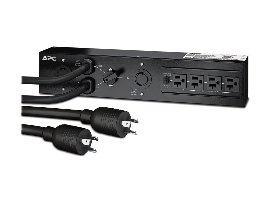 APC Service Bypass PDU, 3000VA, 120V, 30A, NEMA L5-30P Input, 8ft Cord, (4) NEMA 5-20R, (1) NEMA L5-30R