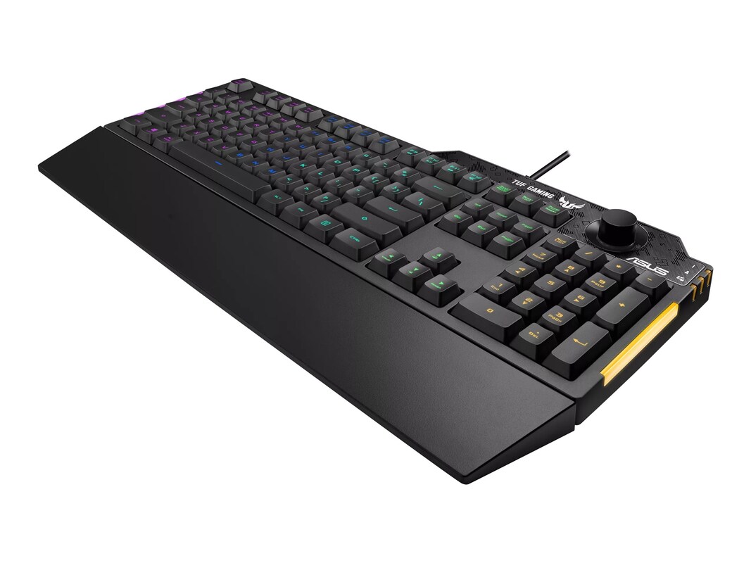 ASUS TUF Gaming K1 is a gaming keyboard that delivers uncompromising performance and exceptional durability. It's equipped with switches that deliver silent tactility with every press. These are housed in a 300 ml spill-resistant frame that's fortified by a specialized coating and validated for tough duty. K1 also features customizable RGB illumination and side-mounted light bars for personalized style, a dedicated volume knob for fast, intuitive control and a detachable ergonomic wrist rest for extended comfort.