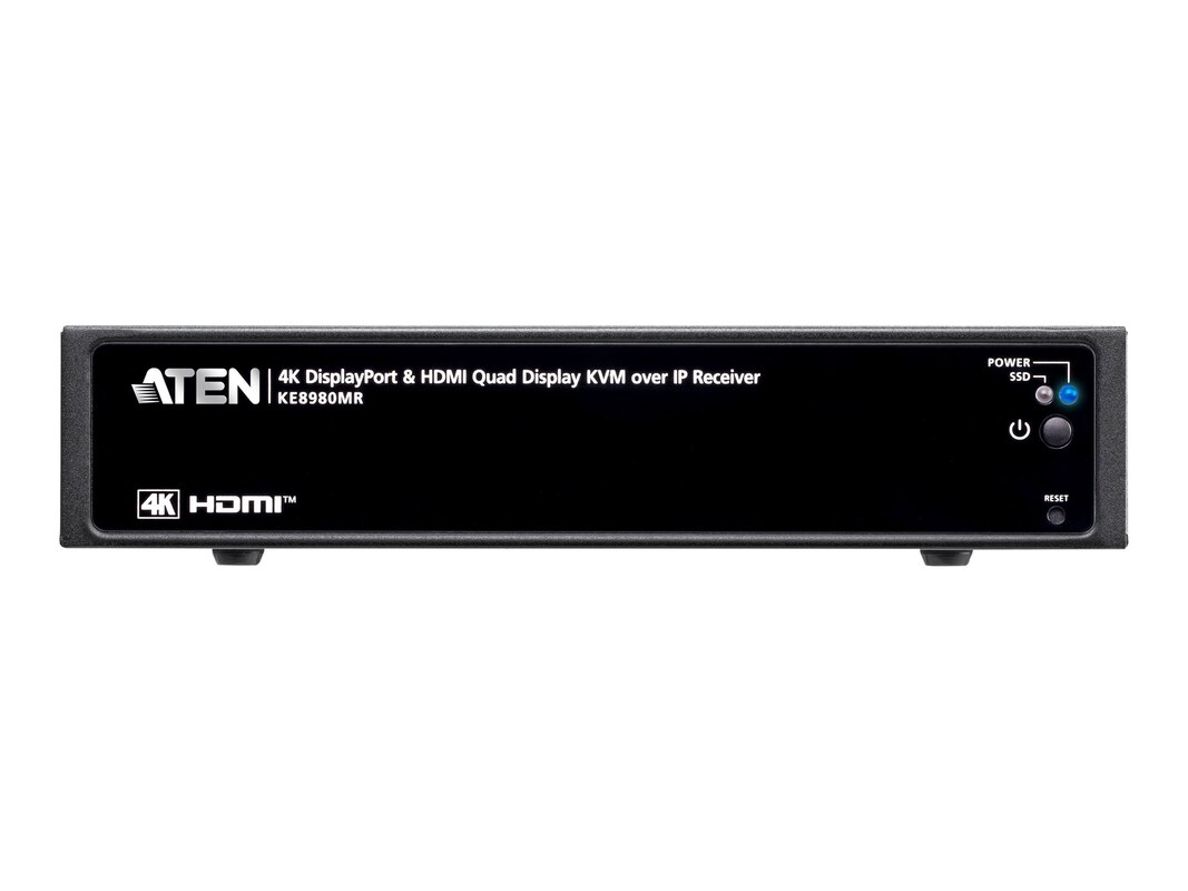 The ATEN KE8980MR is a versatile KVM, video, and audio switch designed for efficient management in high-demand environments. Supporting a maximum video resolution of 4096 x 2160 at a V-Sync rate of 60 Hz, this device enables seamless visual performance across multiple displays. With the capability to support up to four IP users and one local user, it ensures flexible access for various operational needs. Built to endure a wide range of environmental conditions, the KE8980MR operates effectively from -10°C to 50°C and can be stored in temperatures as low as -40°C and as high as 85°C. The device also includes robust security features like TLS encryption and multiple authentication methods, including RADIUS and TACACS+, making it ideal for secure operations. The rack-mountable form factor and advanced scheduling capabilities enhance usability, ensuring efficient and organized workflows.