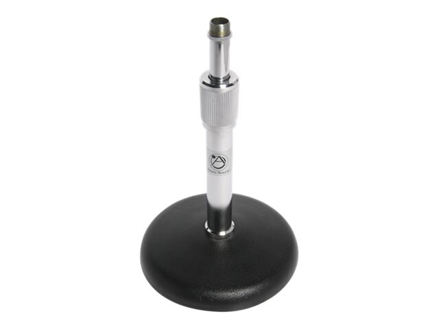 Versatile stands may be adjusted from 8" to 13" and include a grip-action clutch and ebony-finished cast iron base. DS-7 features chrome-plated tubing.