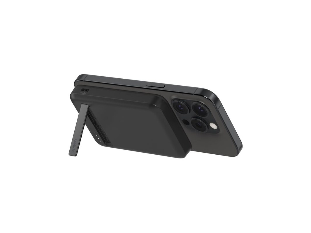 Wirelessly charge iPhone and other Qi2-enabled smartphones quickly and safely with our BoostCharge Pro Magnetic Power Bank with Qi2 15W 5K. Your Qi2 and MagSafe compatible devices will have easy and seamless on-the-go charging up to 15W. Watch video, stream or create content at the perfect viewing angle with the integrated kickstand — even while your device is charging.