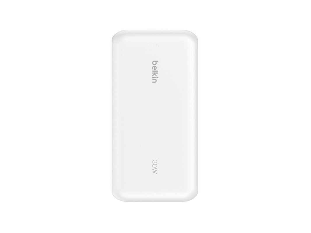 The Belkin BoostCharge power bank is designed to ensure that devices remain charged on the go, with a capacity of 20,000 mAh. This power bank includes an integrated USB-C cable for easy connectivity, as well as an LED indicator to monitor charging status. Its TSA compliance and airplane safe features make it a travel companion, allowing users to carry it without hassle. With the ability to provide 30 W of power, it can efficiently charge devices, including tablets and cellular phones, while also supporting pass-through charging to keep multiple devices powered simultaneously.
