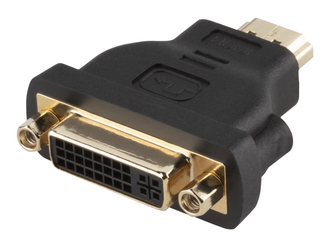 DVI-to-HDMI Adapters allow connection of DVI-enabled components to HDMI-enabled components. This adapter consists of a female DVI and a male HDMI connector. This allows you to plug the male HDMI side of the Adapter into your HDMI-enabled component, and then connect a DVI cable from the Adapter to an DVI-enabled component. The superior construction ensures maximum signal transfer for brighter, more accurate colors and sharper images.