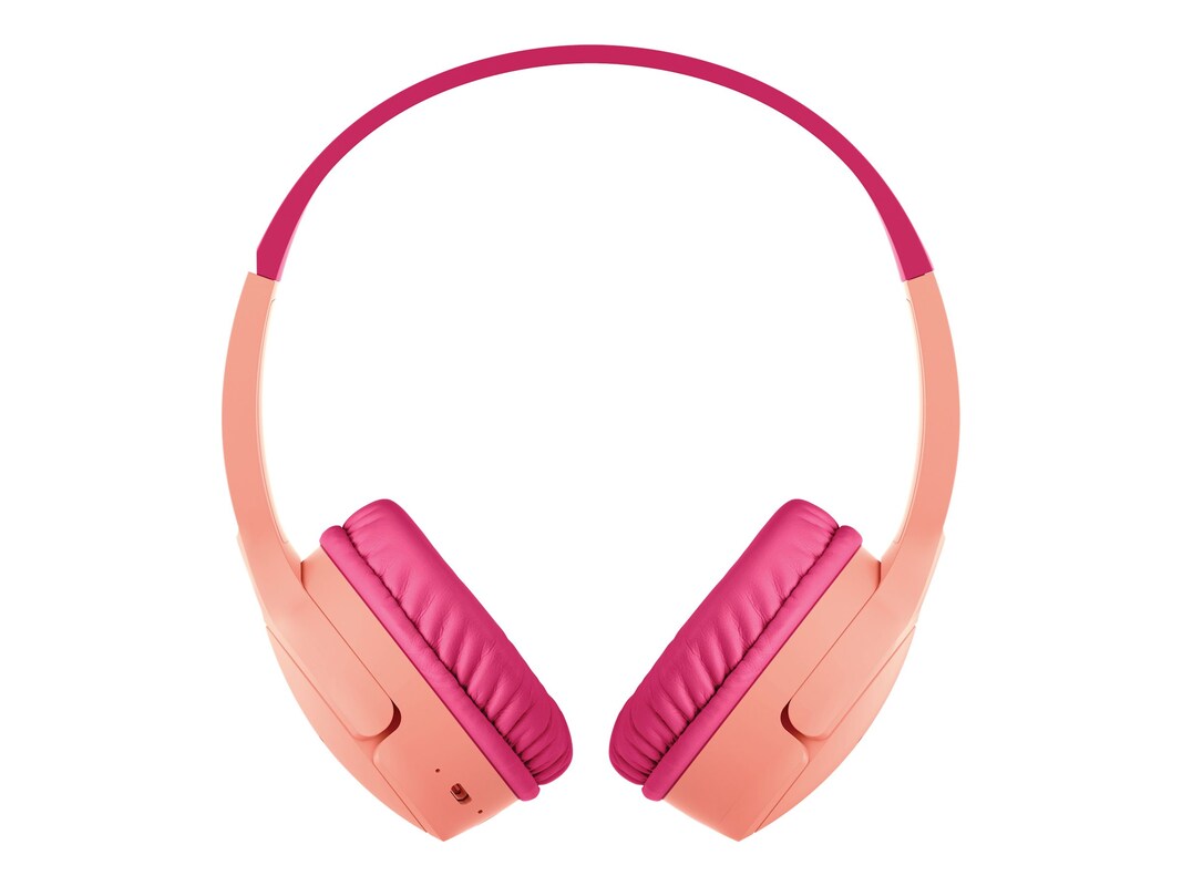 Perfect for distance learning, long car rides, or just keeping them occupied, these premium on-ear headphones have been designed with kids in mind. A volume cap of 85dB* protects young ears, and extended battery life keeps them listening all day long. Keep your kids' ears comfortable and protected with premium wireless on-ear headphones designed just for them. Whether they're doing schoolwork online or watching videos in the back seat, easy pairing and intuitive controls are perfect even for young kids, while a volume cap of 85dB* keeps them safe during longer listening sessions. A battery life of up to 30 hours means kids can spend more uninterrupted time with their favorite sounds, and durability testing up to 2 years keeps them safe from spills and accidents. Designed to work with popular distance-learning devices and apps, and includes an optional wired connection. Long lasting battery keeps headphones charged for 28-30 hours when listening. A built-in microphone allows kids to talk to teachers and friends on their device. A volume cap of 85* decibels protects kids' ears while they listen, learn, and play. Bluetooth 5.0 with a 10M/30ft range keeps kids connected to their devices even if they move around while listening. Tested for use with popular learning devices like iPads and Amazon Fire Tablets, and with programs like Zoom, Schoology, and Seesaw. Designed with a soft, adjustable headband and smaller cushion cups for a better fit than regular headphones. Durability tested to withstand spills, accidents, and anything else your kids throw at them for up to 2 years. Kids won't need any help setting up or using their headphones thanks to simple touch controls for play/pause, volume control, and Bluetooth pairing. A 4-foot 3.5mm aux port and included cable give you the option to connect directly to devices if preferred.