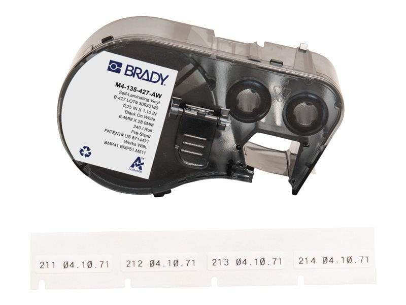 Color: All whiteColor: Black on whiteColor Family: WhiteManufacturer Product Line: BradyModel: B-427Print Technology: ThermalPrint Technology: Thermal transferProduct Type: Self-laminating vinyl