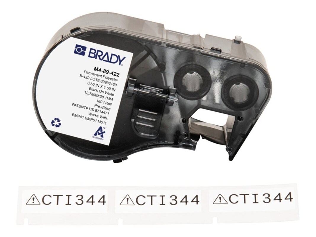 Color: Black on whiteColor Family: BlackColor Family: WhiteManufacturer Product Line: BradyModel: B-422Print Technology: Thermal transferProduct Type: Polyester self-adhesive label tape