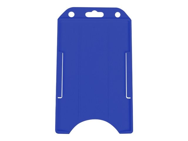 Vertical or horizontal semi-rigid, open-face card holder with slot/chain holes and rails on all 4 sides. Made of ABS material.