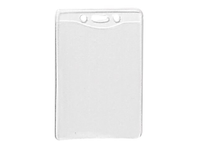 The badge holders easily attach to any lanyard or badge reel. These badge holders have a clear vinyl front and a textured orange peel back for easy card insertion.