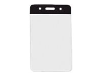 These data/credit card holders feature a clear vinyl pocket with a color bar at the top. Slot and chain holes allow for easy attachment to lanyard or chain.