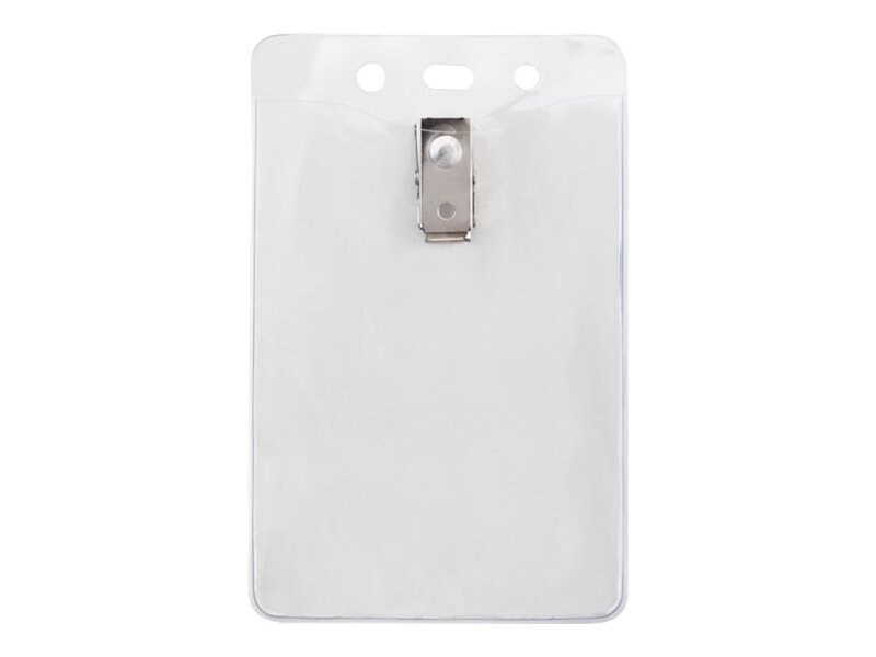The Brady badge holder is designed to keep identification cards secure and visible. With inner dimensions of 76 mm in width and 102 mm in height, it accommodates standard-sized cards seamlessly. The vertical orientation allows for easy viewing while the flexible vinyl material ensures durability in daily use. This card holder features a convenient top side open design for quick access and includes slotted holes for easy attachment with a clip. Suitable for events, workplaces, or any setting where identification is crucial, this badge holder meets everyday needs.