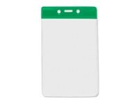 Easily attach to lanyards, reels or strap clips. Heavy-duty clear vinyl holders with reinforced edges.