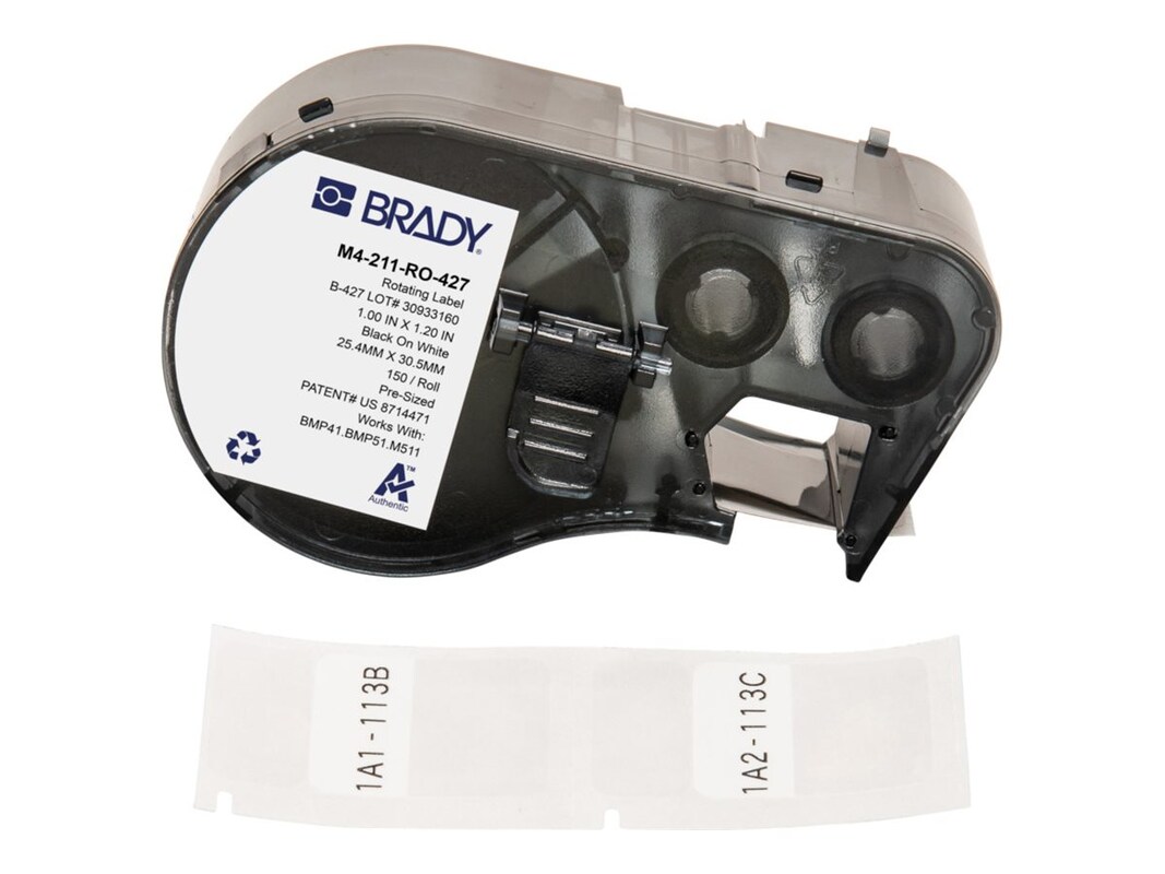 The Brady M4-211-RO-427 label cartridge combines thermal transfer technology to produce high-quality, durable labels that meet various demanding conditions. This label cartridge is designed to function in extreme environments, providing resistance to water, oil, chemicals, and weather. With a printable area of 12.7 x 25.4 mm, this media offers efficient usage with 150 cards per roll and self-laminating features that enhance longevity.