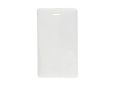 These durable proximity card holders feature a frosted back that provides added privacy without interfering with card readers. Lock-in slot holds ID securely. Card "locks" in place when badge strap is inserted into slot.