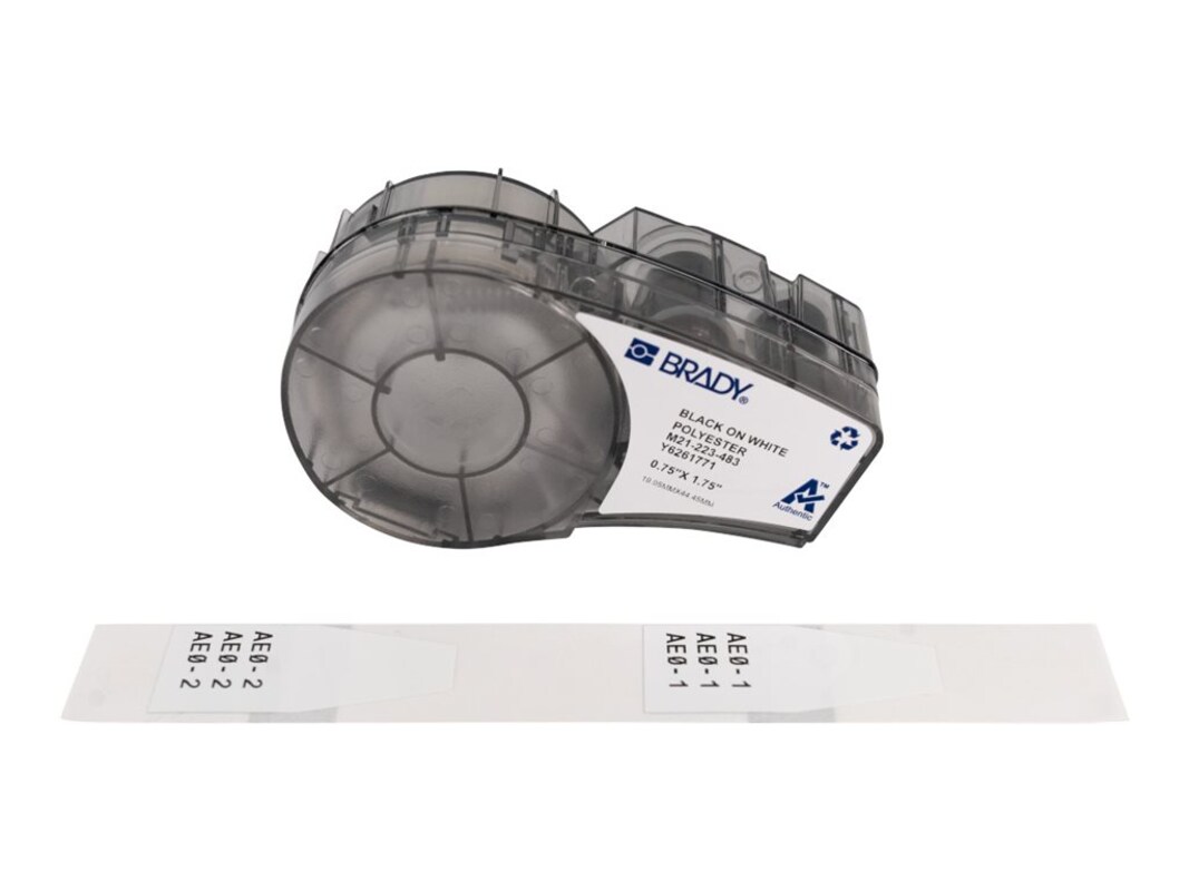 Brady QuickFlag thermal labels offer performance and durability for various labeling needs. These die-cut labels are designed with rounded edges and a glossy surface finish, ensuring a professional appearance while also providing easy application. With a permanent rubber adhesive, these labels securely adhere to most surfaces, making them suitable for long-lasting labeling solutions.