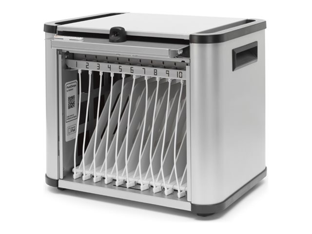 The Bretford PureCharge Station is a charging stand designed for tablets, making it a solution for both personal and professional use. With a total of 10 Apple Lightning output connectors, this stand facilitates simultaneous charging of multiple devices, ensuring convenience in busy environments where devices need power at once. The device features a pocket door that enhances security and accessibility, while an LED indicator keeps users informed of the charging status. This charging stand delivers a maximum electric current of 2.1 A, ensuring devices are powered effectively.