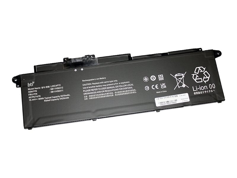 BTI L23C4P72-BTI 4-CELL 15.44V LI-ION NOTEBOOK BATTERY FOR LENOVO THINKPAD T16 GEN 3, T16 GEN 3 21MN, T16 GEN 3 21MQ, T16 GEN 4, T16 GEN 4 21QN, T16 GEN 4 21QQ, P16S GEN 4, P16S GEN 4 21QR, P16S GEN 4 21QS, P16S GEN 4 21RX, P16S GEN 4 21RY.