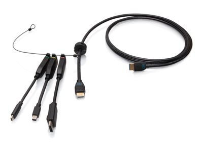 The Patented Universal 4K HDMI Dongle Adapter Ring is the perfect addition to conference rooms, huddle spaces, lecture halls, or classrooms to make sure that anyone can connect. Choose from the dropdown boxes on the right hand side to browse and configure the perfect combination of adapters! The dongle style adapter gives more flexibility, allowing for better placement when connecting to thin or lighter weight laptops. Each adapter is color-coded with a band that saves time and frustration by making it easy to identify the adapter you need quickly. The included pre-mounted C2G Performance Series Premium HDMI cable allows this adapter ring to be utilized right out of the box to the in-room HDMI display. The adapter ring slides to the HDMI connector when needed and out of the way when not in use, reducing strain on the HDMI cable and clutter on the tabletop.